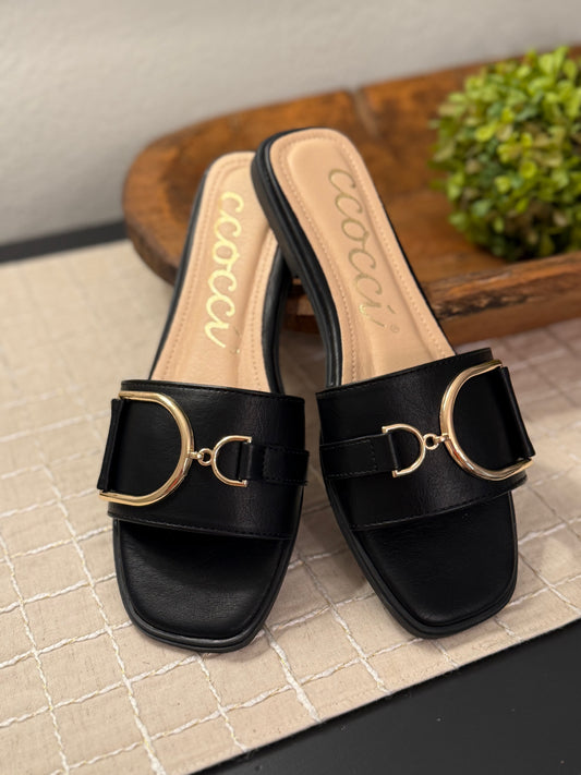 Black gold tone sandal
