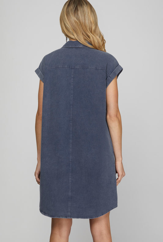 Adorable Button Down Shirt Dress - Denim - Perfect for a warmer Fall transition piece!