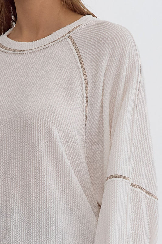 EXPOSED SEAM RAW EDGE SHORT SLEEVE KNIT TOP
