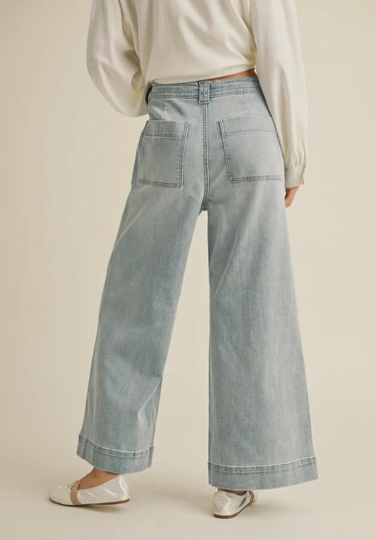 Denim tie front pants - washed denim