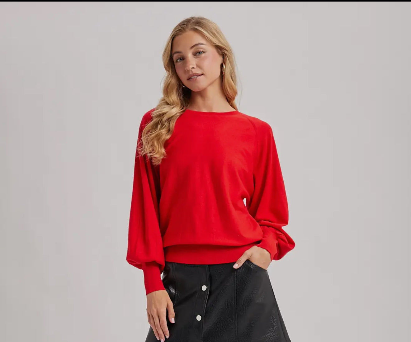This gorgeous ruby knit pullover is perfect for layering and perfect for warm winters in the south. The super soft fabric makes it ideal for transitioning between seasons. Pair with jeans for a casual look or dress up with a skirt or slacks for a holiday event or date night!